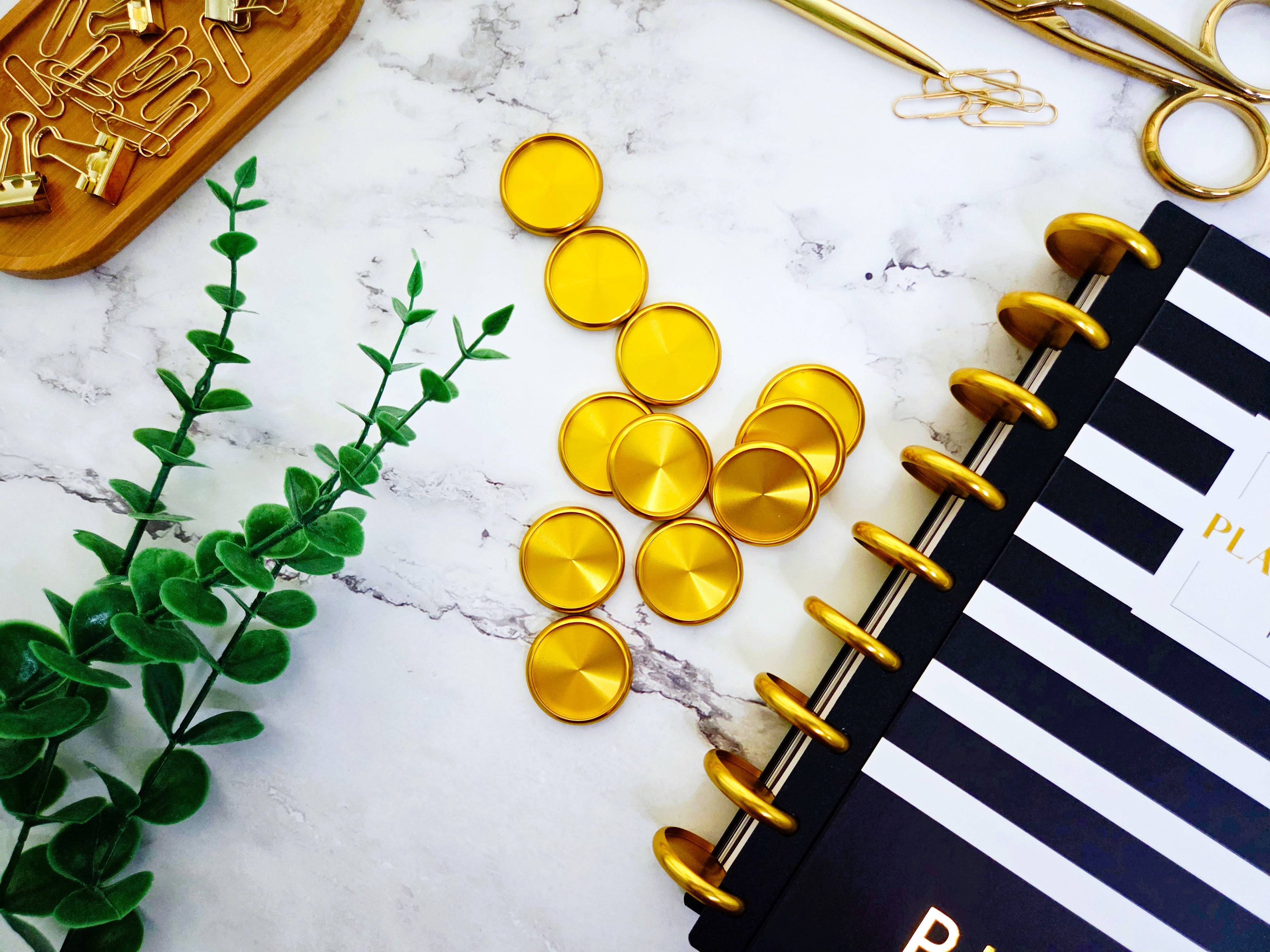Gold Metal Planner Discs – Set of 11 (32mm) | Fits Any Discbound Planner